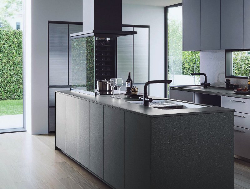● ダークグレーカラーのシックで機能的なシステムキッチン