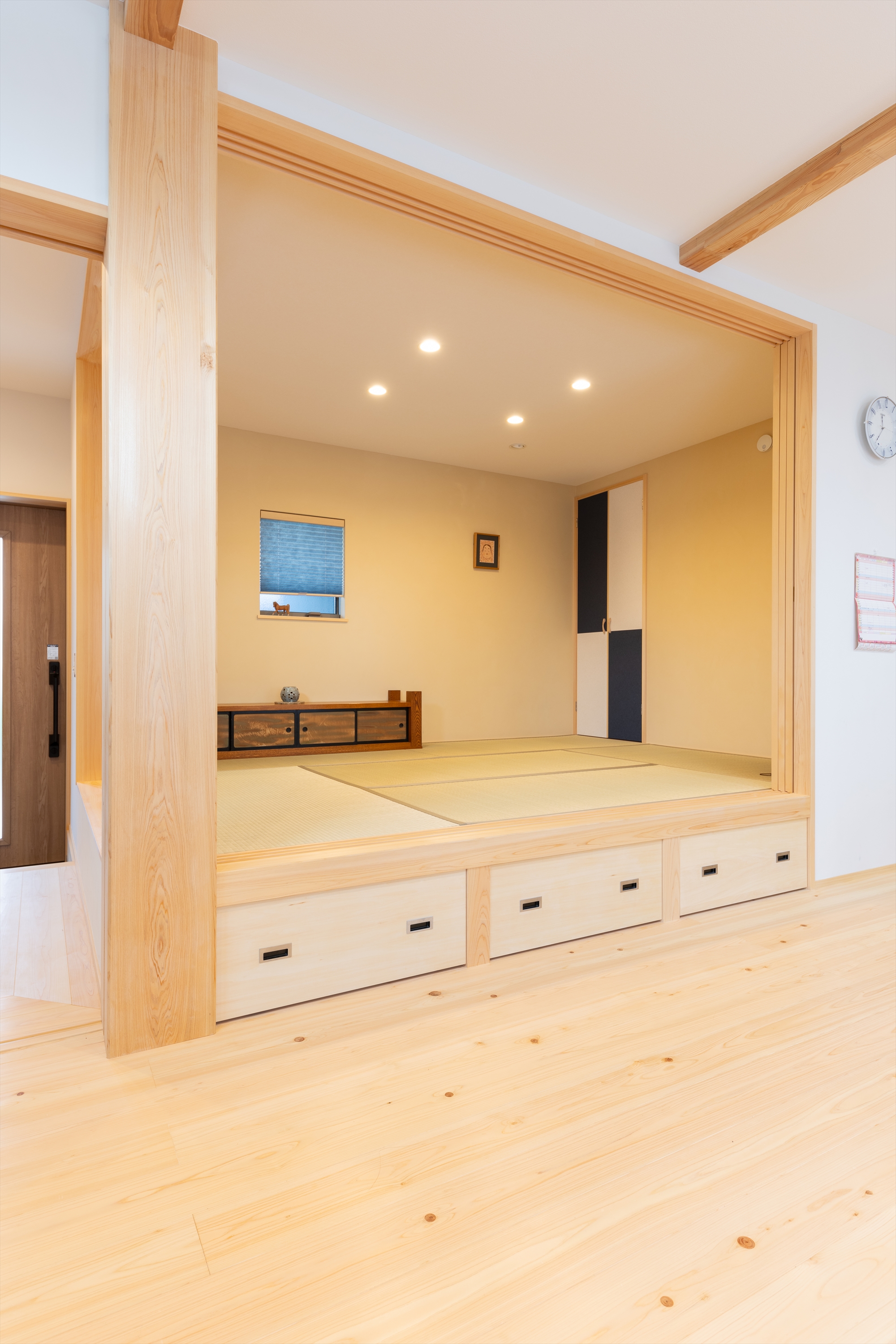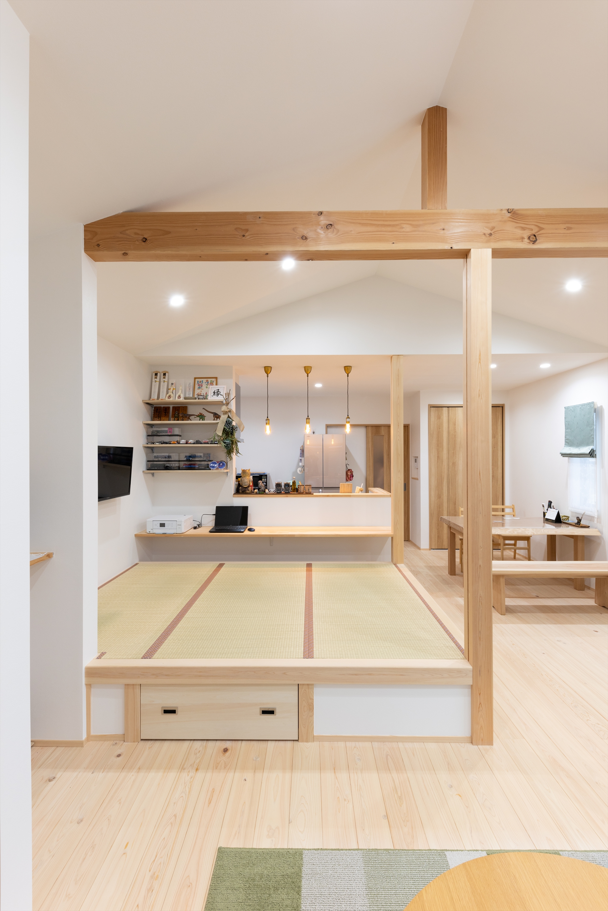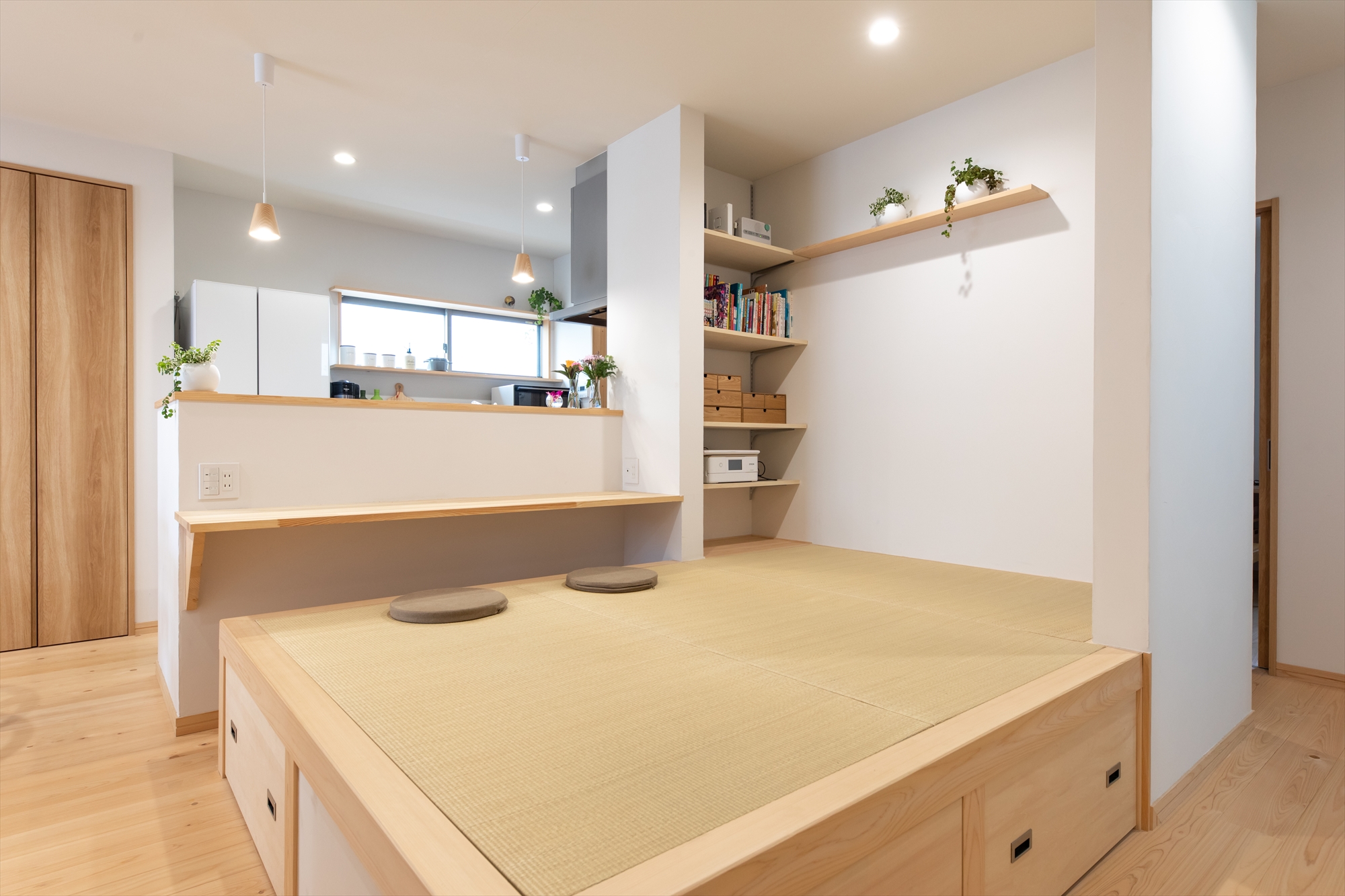 ・小上がりは下部を収納として活用し、居場所と収納を兼ねた効率の良い空間としています。