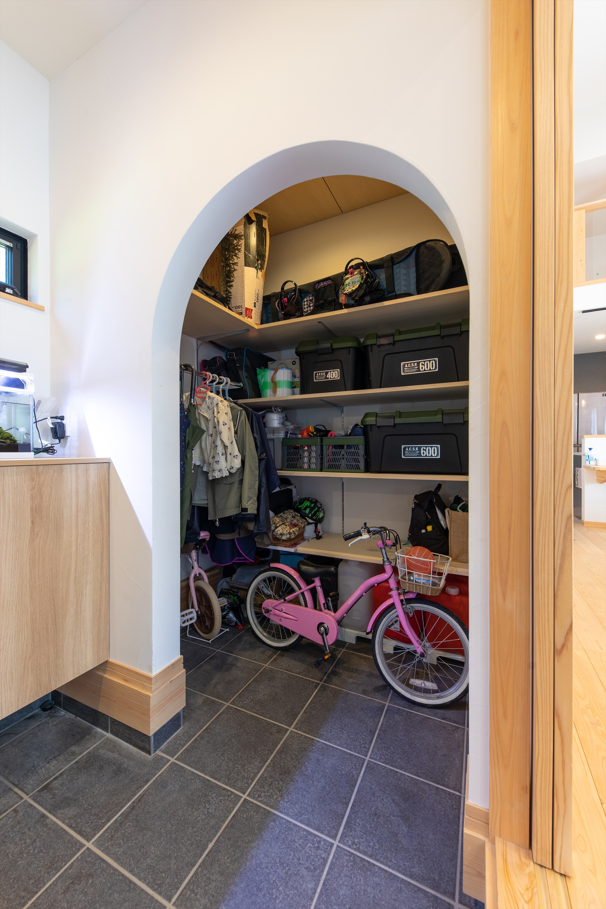 ・玄関の土間は使い勝手と収納力を確保し、日常動線をスムーズにしています。