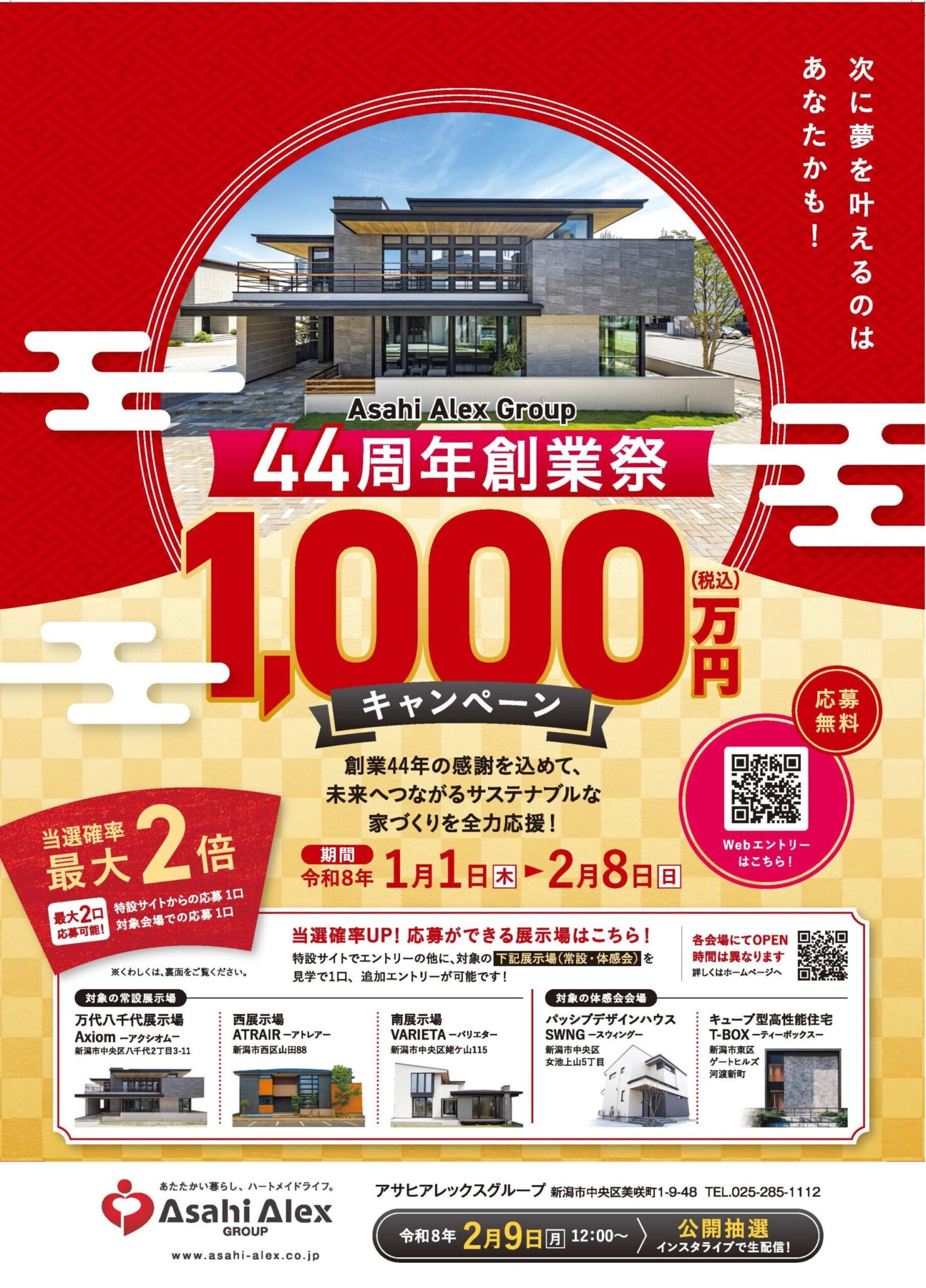 特賞(1名様):建築資金 1,000万円(税込) プレゼント(自由設計・36坪以上)