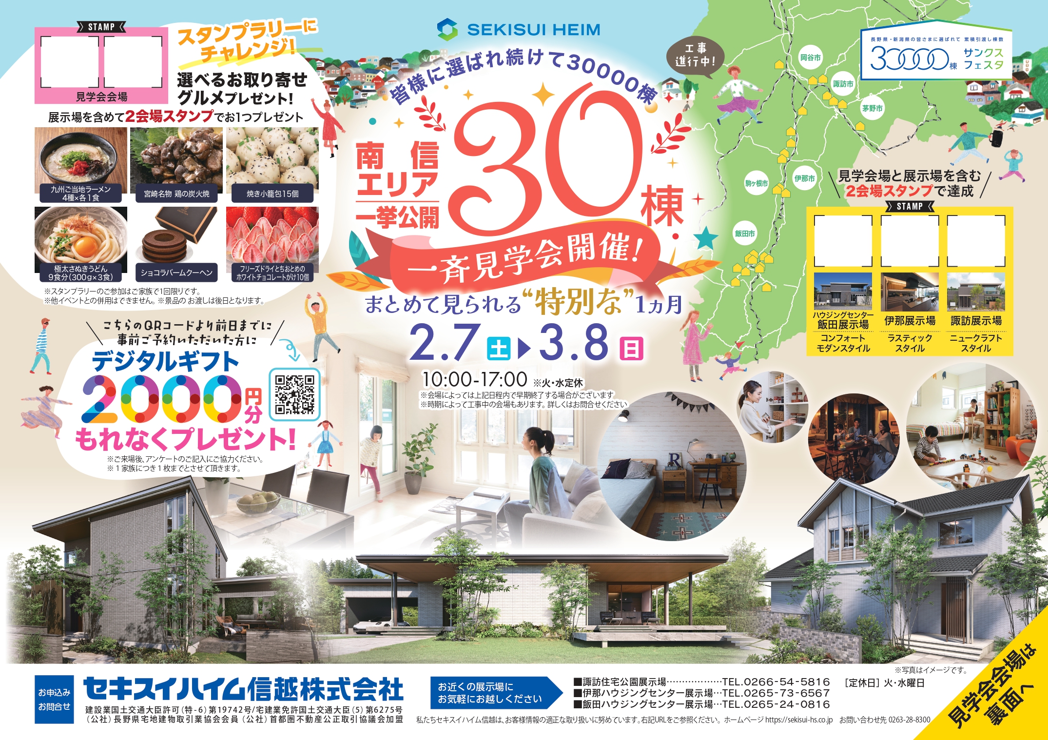イベント詳細 諏訪 住宅公園イベント一覧【セキスイハイム】一... 諏訪 セキスイハイム信越 イベント住まいの体験会見学会 【セキスイハイム】一斉見学会のお知らせ《南信エリア複数棟一挙公開》 イベント概要 日付: 2/7(土)~3/8(日) ※火・水曜日定休 時間: 10:00~17:00 場所: ①岡谷市堀ノ内 ②茅野市塚原 ③下諏訪町矢木町 ④諏訪展示場 Web予約 電話予約 電話予約 0266-58-6464 . . . . . . . . . . . . . . . アクセス 場所: ①岡谷市堀ノ内 ②茅野市塚原 ③下諏訪町矢木町 ④諏訪展示場 Google Mapで見る イベント予約について ◇当日のご案内 ・イベントのご案内を担当者から差し上げます。 ・キャンセルされる場合は、展示場のインフォメーションセンターまでご連絡ください。 必須イベント名 【セキスイハイム】一斉見学会のお知らせ《南信エリア複数棟一挙公開》 長野/諏訪住宅公園 必須日にち ※土日の見学をご希望の場合は前日の15時まで、平日の見学をご希望の場合は2日前までにご予約ください。15時以降にご予約いただいた場合は、ご対応できない場合がございます。 必須時間 ※イベントは各一時間ほどを予定しています。ご了承ください。 9:00~ 10:00~ 11:00~ 12:00~ 13:00~ 14:00~ 15:00~ 16:00~ 17:00~ 18:00~ 19:00~ <!-- ※3棟同時見学会、合同見学会の所要時間は2時間となっております。 (例)13:00-14:00をご選択の場合、開始13時、終了15時となります。 --> 必須参加人数 必須名前(漢字) 必須名前(かな) 必須メールアドレス 必須電話番号(携帯も可) 必須住所:郵便番号 任意住所:都道府県 長野県 北海道 青森県 岩手県 宮城県 秋田県 山形県 福島県 茨城県 栃木県 群馬県 埼玉県 千葉県 東京都 神奈川県 新潟県 富山県 石川県 福井県 山梨県 岐阜県 静岡県 愛知県 三重県 滋賀県 京都府 大阪府 兵庫県 奈良県 和歌山県 鳥取県 島根県 岡山県 広島県 山口県 徳島県 香川県 愛媛県 高知県 福岡県 佐賀県 長崎県 熊本県 大分県 宮崎県 鹿児島県 沖縄県 任意住所:市区町村 任意住所:番地 任意コメント欄 ※土日の見学をご希望の場合は前日の15時まで、平日の見学をご希望の場合は2日前までにご予約ください。15時以降にご予約いただいた場合は、ご対応できない場合がございます。