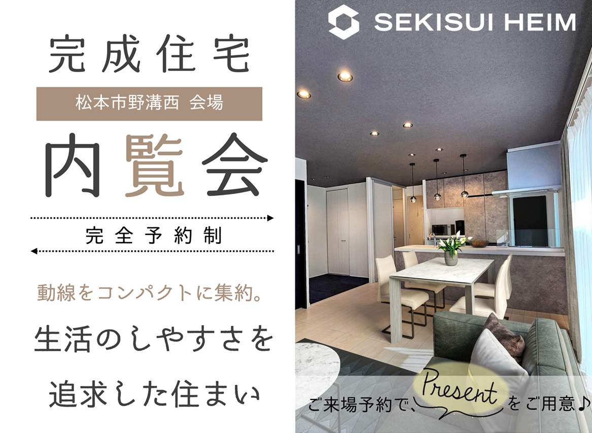【セキスイハイム】★最大5,000円分プレゼント★完成住宅内覧会~松本市野溝西会場~