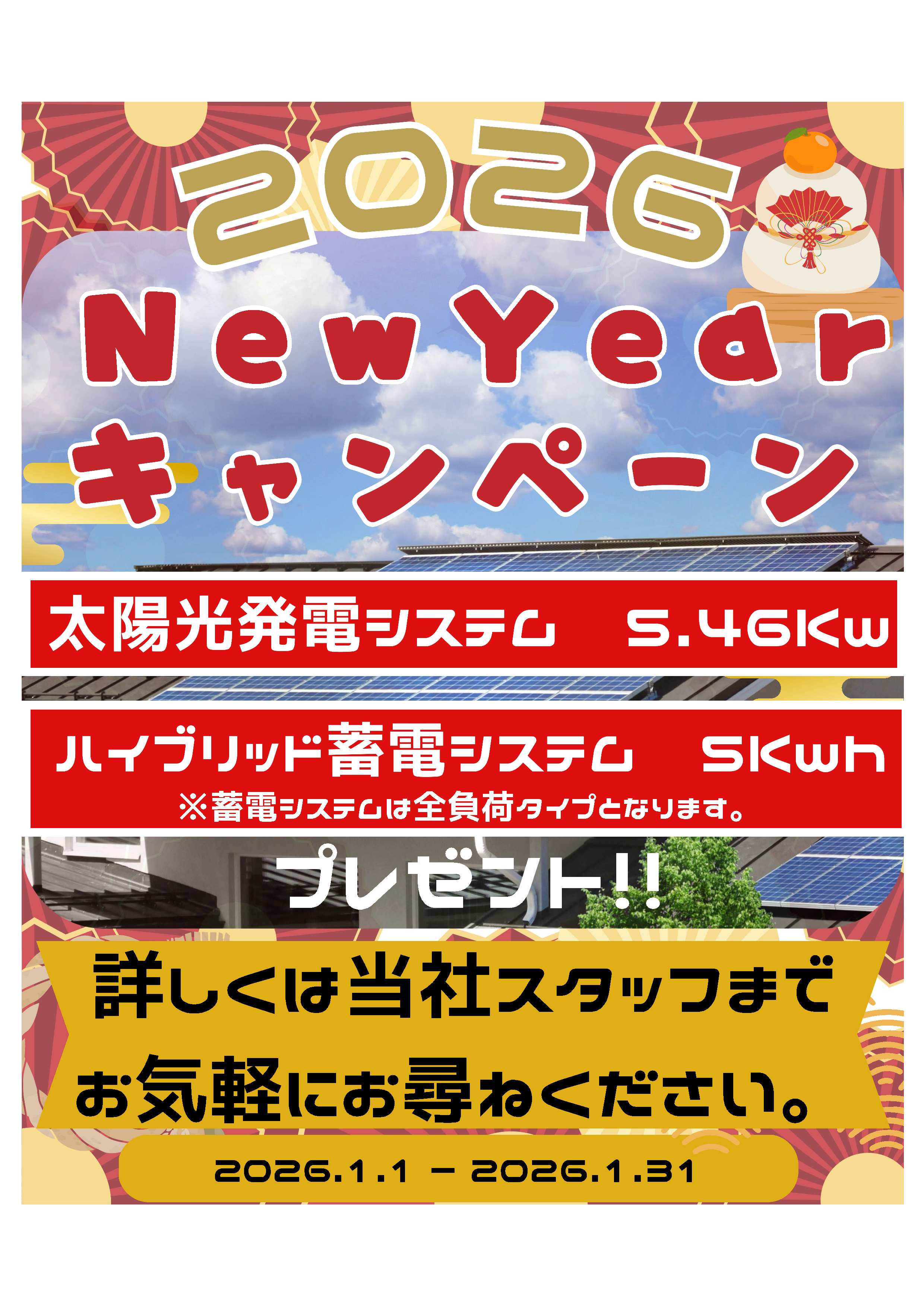 - 限定3棟!太陽光・蓄電池プレゼントキャンペーン開催中です!詳しくはスタッフまでお問合せください。ぜひこの機会に家づくりのお話を聞いてみませんか? ※ご希望日時に添えかねる場合もございます。その際は改めてご希望日時をお伺いさせて頂く場合もございますのでご了承下さい。【定休日:第2・3火曜日、毎週水曜日】