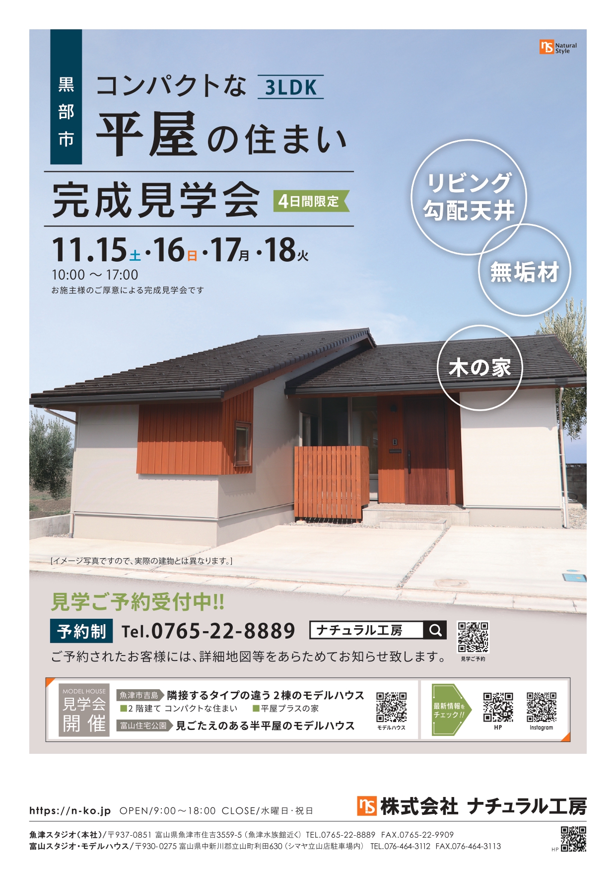 【ナチュラル工房】黒部市お施主様邸完成見学会