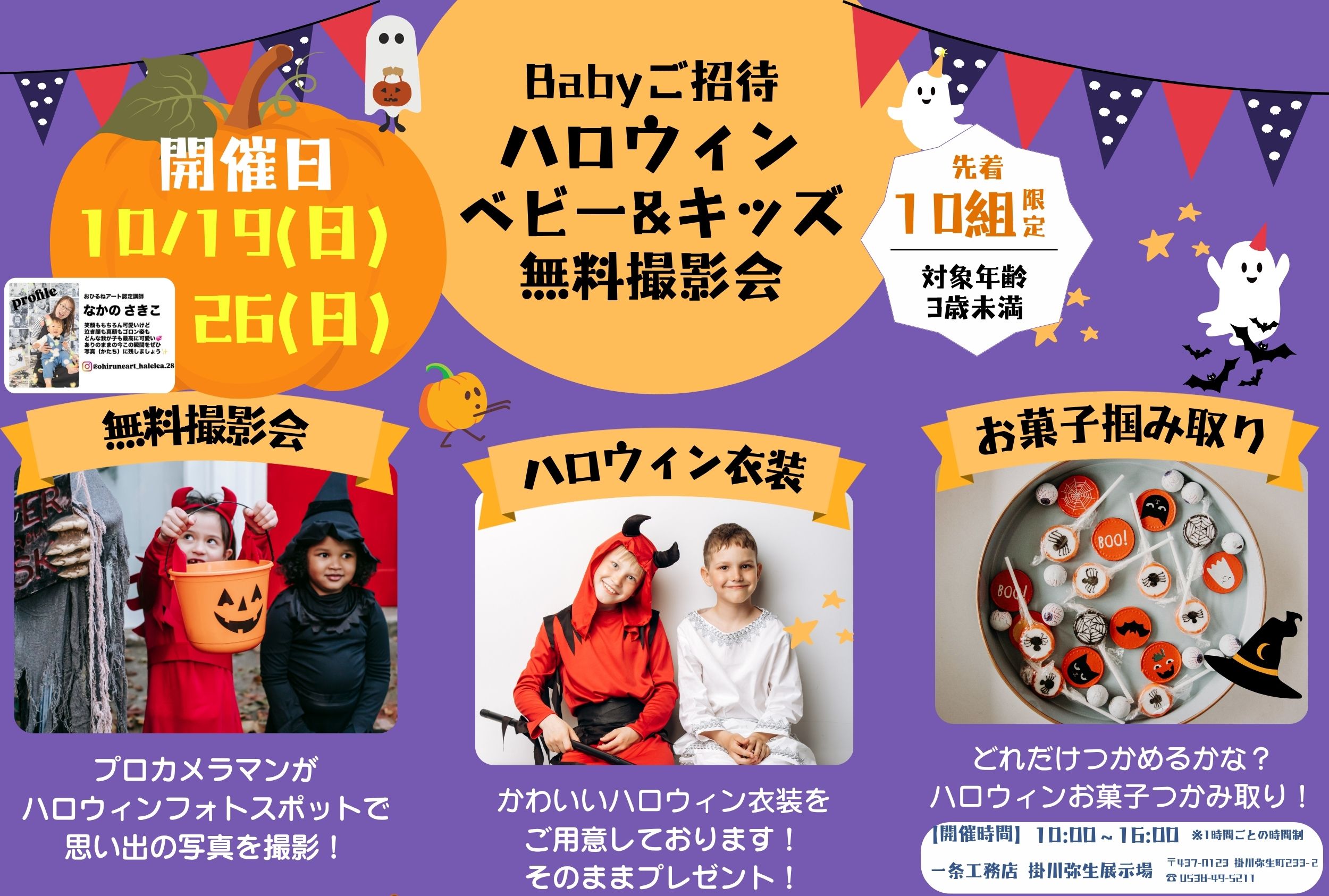イベント詳細 掛川 住宅公園イベント一覧【ハロウィン 撮影会... 掛川 一条工務店 【ハロウィン 撮影会】当日使用した衣装はそのままプレゼント! イベント概要 日付: 10月19日(日)、10月26日(日)2日間限定★ 時間: 10時~16時 場所: 掛川市中央高町 備考: 衣装写真はイメージです。 ★☆ご予約はこちらから☆★ ←クリック!★★ アクセス 場所: 掛川市中央高町 Google Mapで見る イベント予約について