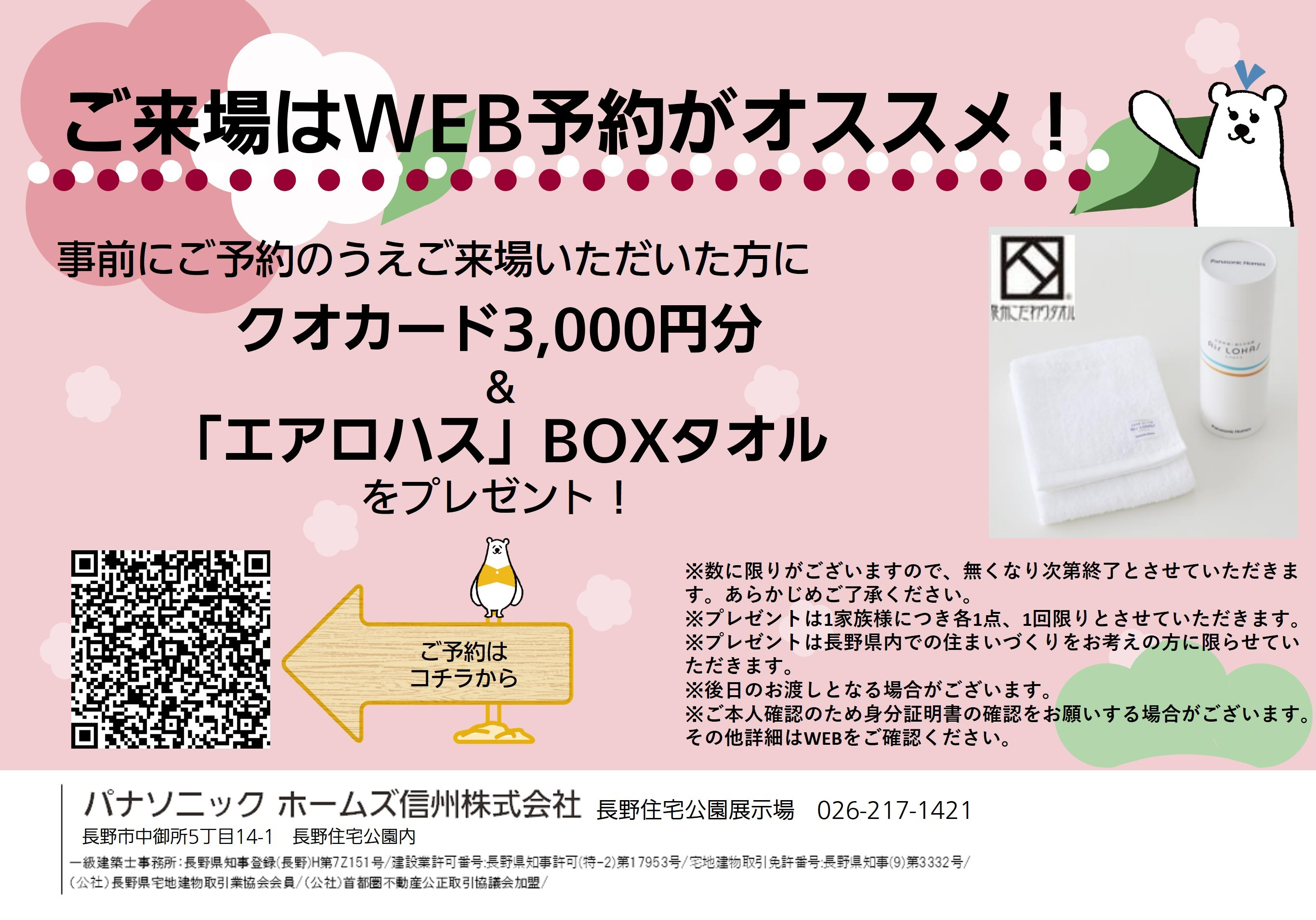 【パナソニック ホームズ信州】ご来場はWEB予約がオススメ!3,000円分クオカードプレゼント!