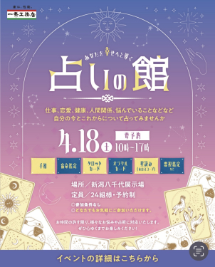 - 占い師さんにお越しいただいて、タロット占いや占星術などご体験いただけます。 興味はあるけど挑戦できずにいる皆様!ぜひこの機会にどうぞ!!