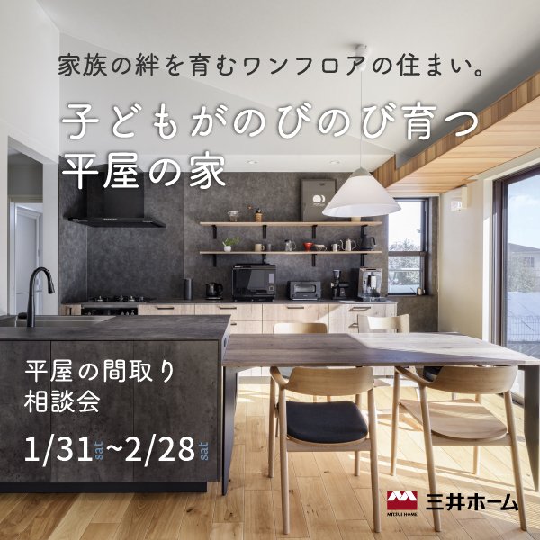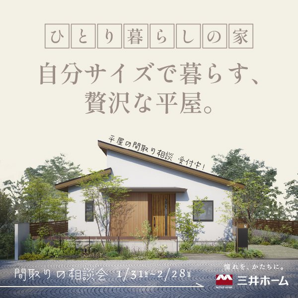 これからの暮らしに「広さがちょうどいい」「温度がちょうどいい」「設備がちょうどいい」あなたの暮らしにちょうどいい平屋の暮らしを見つけに来てください。
