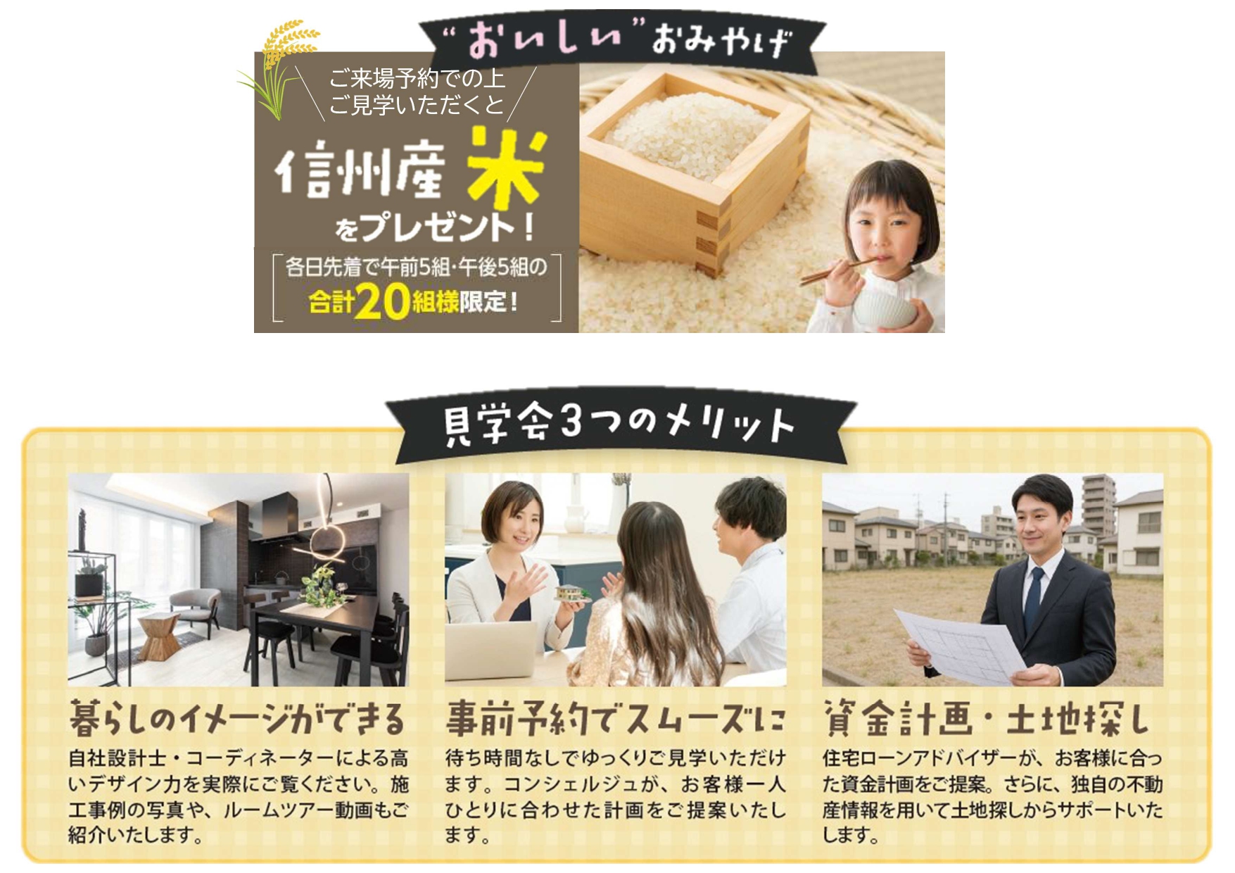 - スタッフが常駐しておりますので、予約なしでもご来場いただけます。 ※予約来場特典をご用意しておりますので、事前予約をおすすめいたします。
