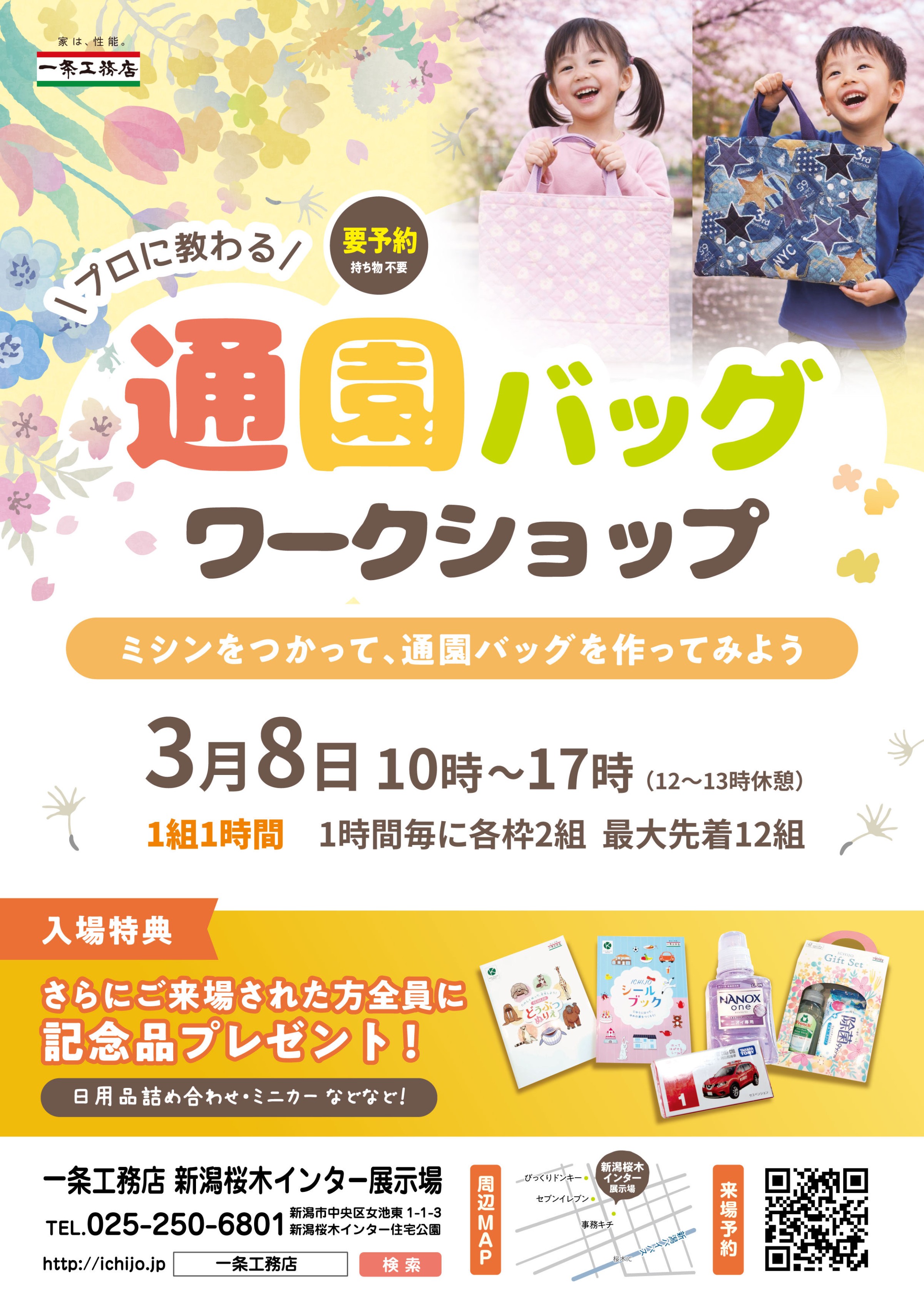 【一条工務店】3月8日(日)開催! ~プロに教わる☆通園バッグワークショップ~