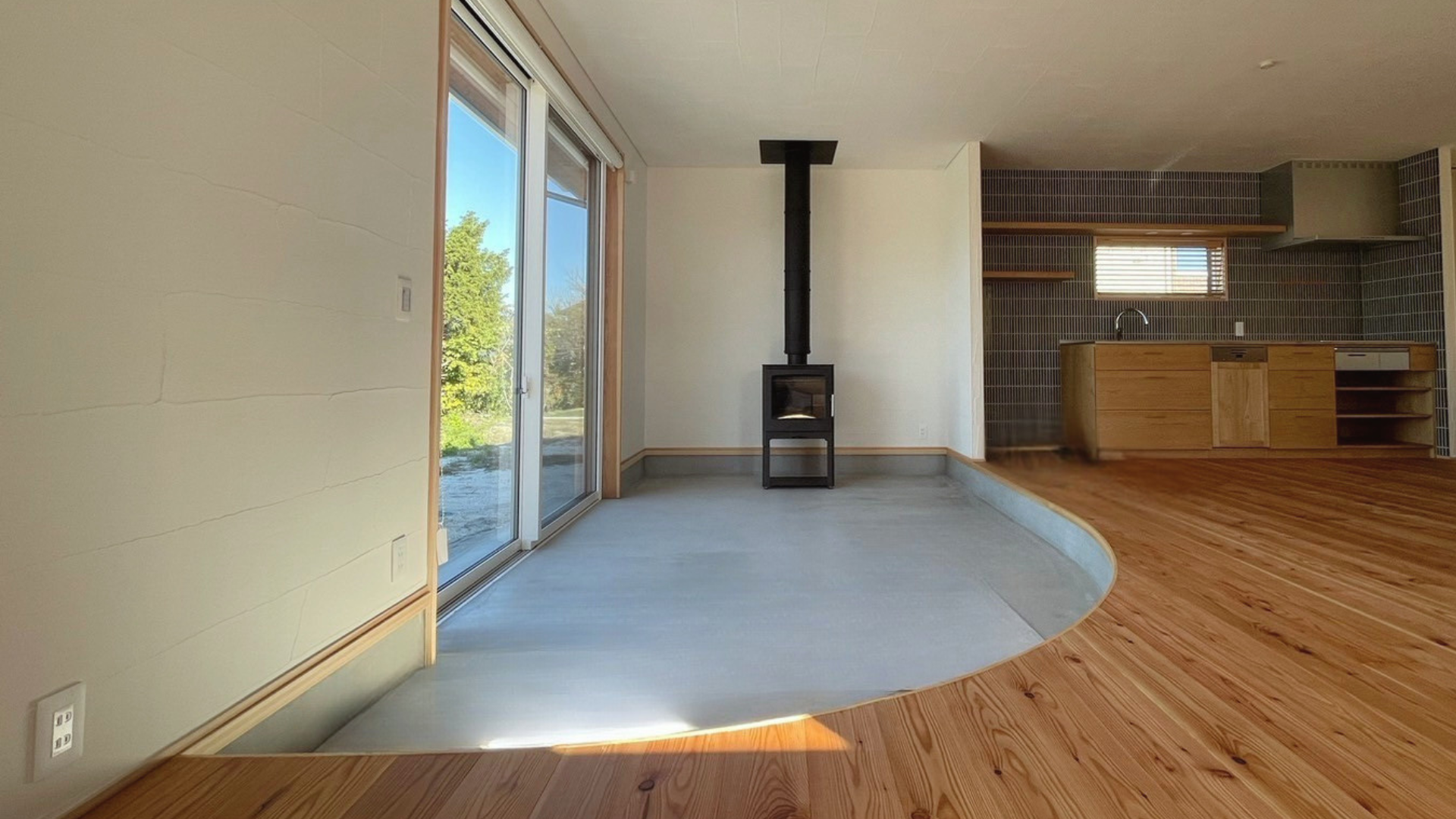 薪ストーブを囲みながら、外の庭と緩やかにつながる心地よさを味わえます。