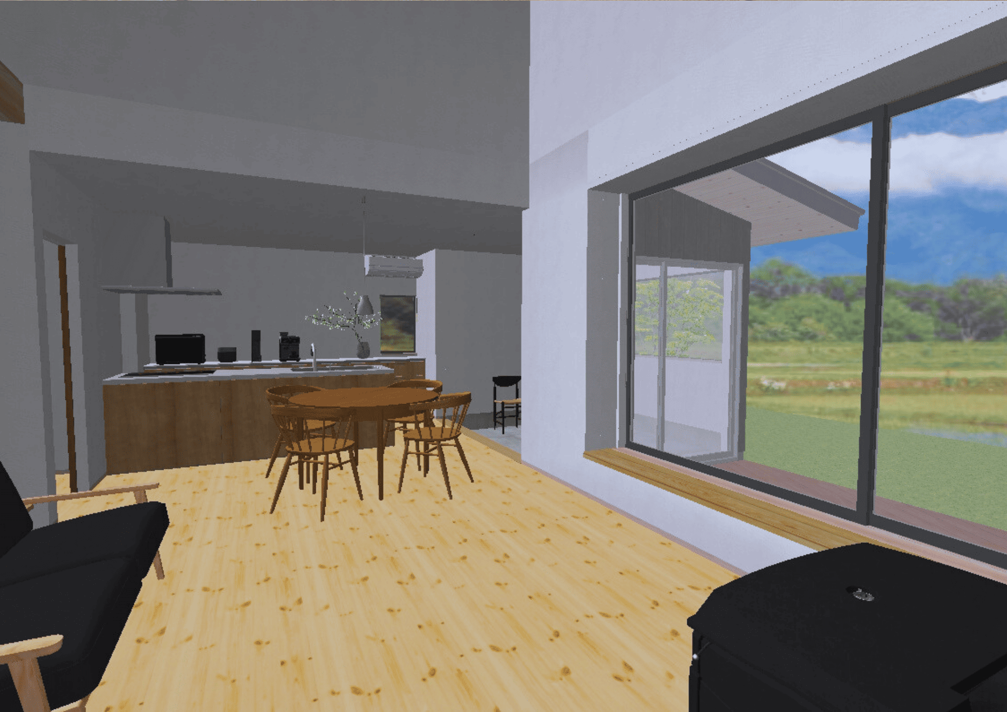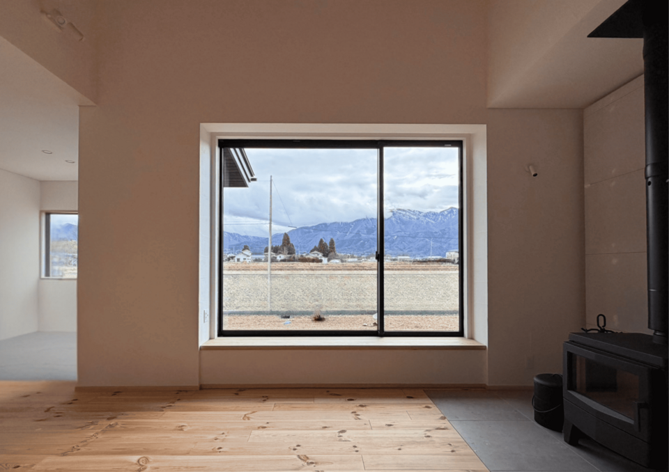 毎日の暮らしの中で北アルプスの景色を楽しめるよう、窓の配置を工夫しました。