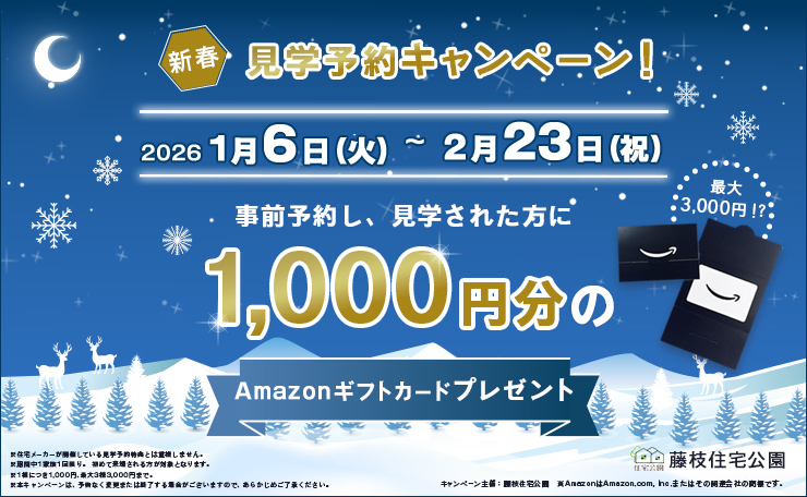 見学予約1棟につき1,000円分のAmazonギフトプレゼント!