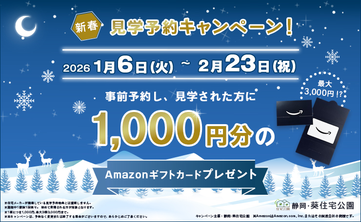 見学予約1棟につき1,000円分のAmazonギフトプレゼント!