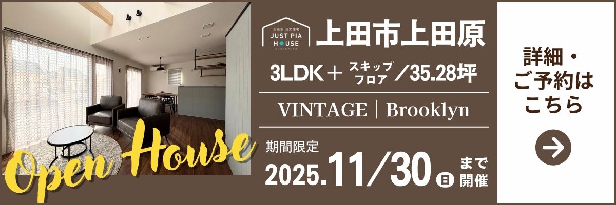 イベント詳細 長野古牧 住宅公園イベント一覧【35.28坪/3L... 長野古牧 JUST PIA HOUSE 【35.28坪/3LDK+スキップフロア】オシャレで落ち着きのあるブルックリンスタイルの家│オープンハウス開催中! イベント概要 日付: 【期間限定】2025年11月30日(日)まで 時間: 10:00~16:00 場所: 上田市上田原 見どころポイントオシャレで落ち着きのある北欧インテリア!人気の北欧インテリアにヴィンテージ感を加えた「北欧ヴィンテージ」をベースにしたインテリア。オシャレさと落ち着きを兼ね備えたデザインです!吹き抜け×スキップフロアで開放感抜群のLDK!リビングは、大開口吹き抜けから明るい陽ざしの差し込む20帖超の広々空間。さらにワークスペースやヌックとしても使えるスキップフロアも設け、家族が思い思いの時間を過ごせるLDKに。 アクセス 場所: 上田市上田原 Google Mapで見る イベント予約について