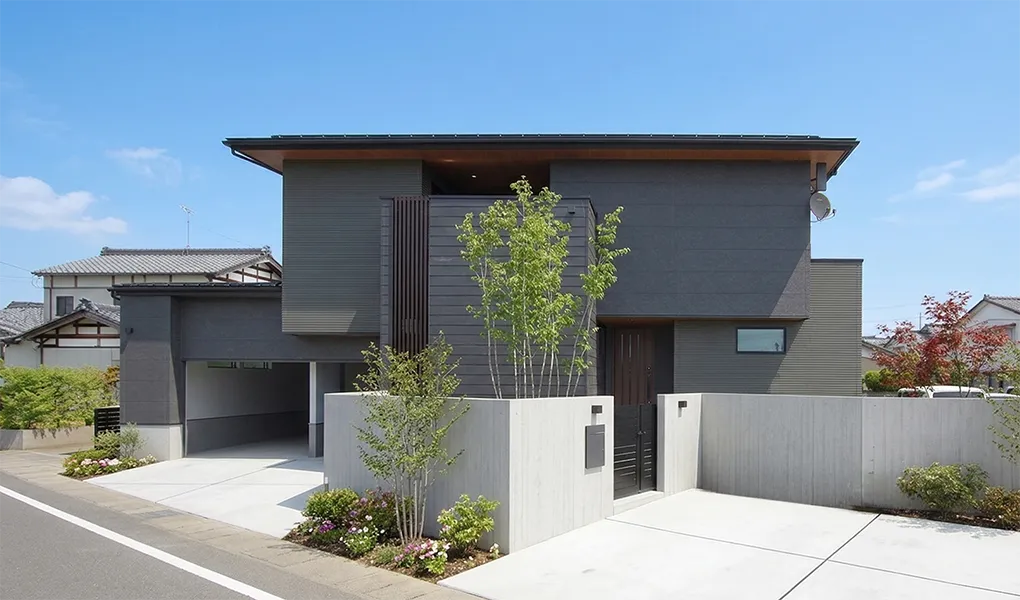 約81坪の敷地を活かし、重厚な門扉で外部からの視線を遮るクローズ外構を採用した共有型二世帯住宅。そこには、ご家族の安心と四季の彩りを守る、静謐な空間が広がります。親世代・子世代が程よい距離感を保ちながらも、互いの感性を尊重し合える豊かな住まいが完成しました。