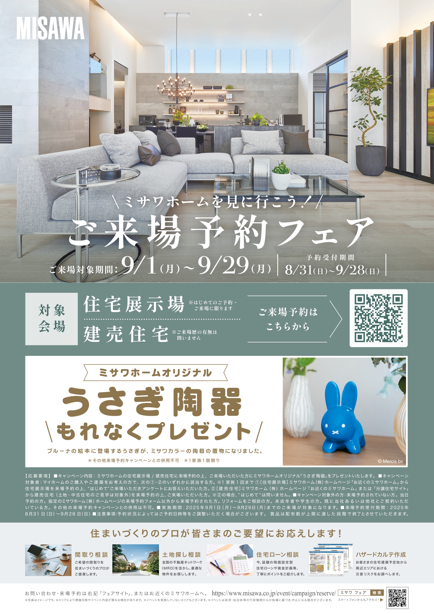 【ミサワホーム】 展示場に❞はじめて❞のご来場予約でミサワホームオリジナル「うさぎ陶器」もれなくプレゼント!
