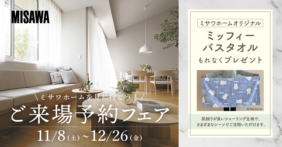 【ミサワホーム】 展示場に ❞はじめて❞ のご来場予約でミサワホームオリジナル「ミッフィーバスタオル」プレゼント!