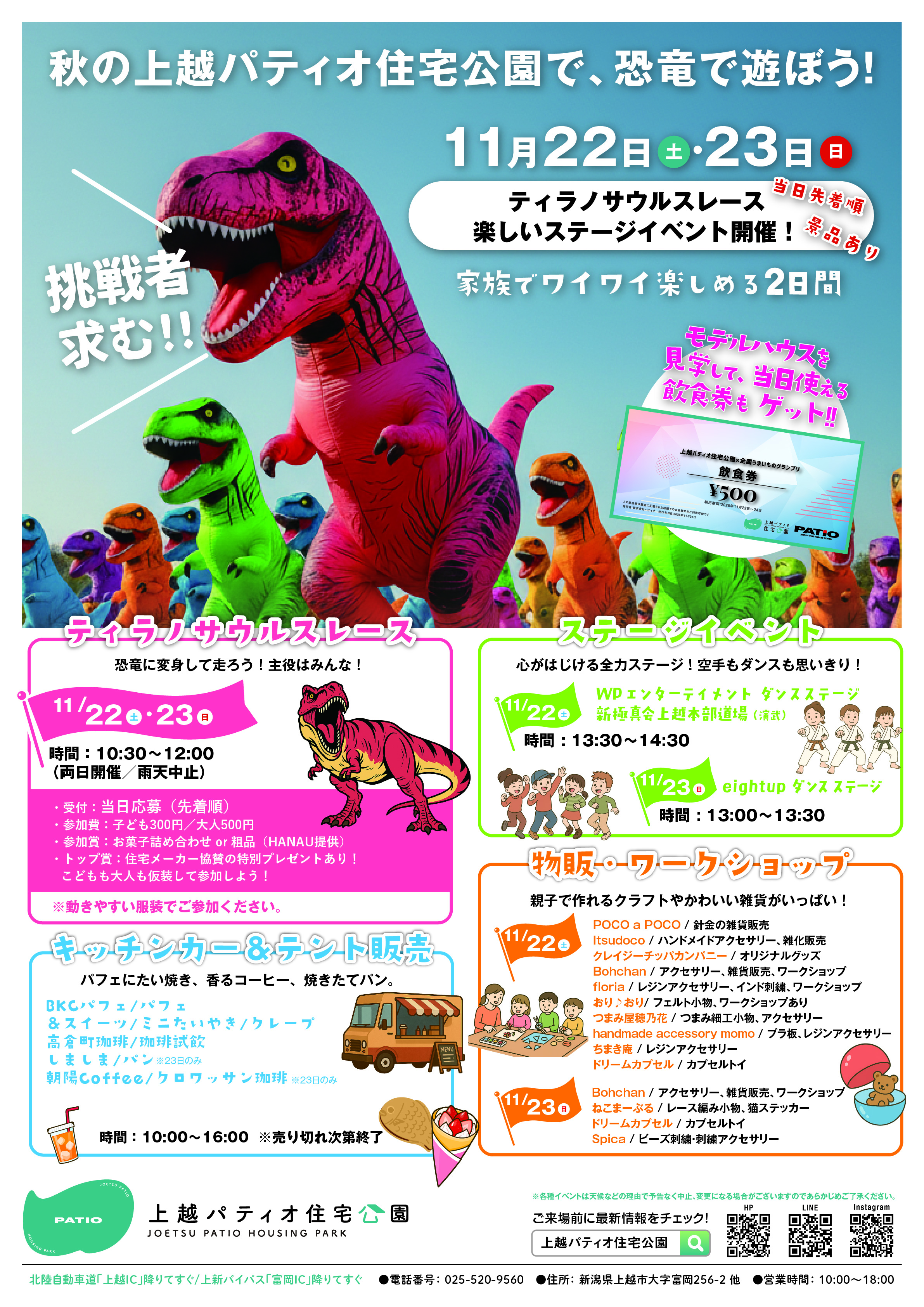 上越パティオ住宅公園で“恐竜まつり”!ティラノレースに挑戦しよう!