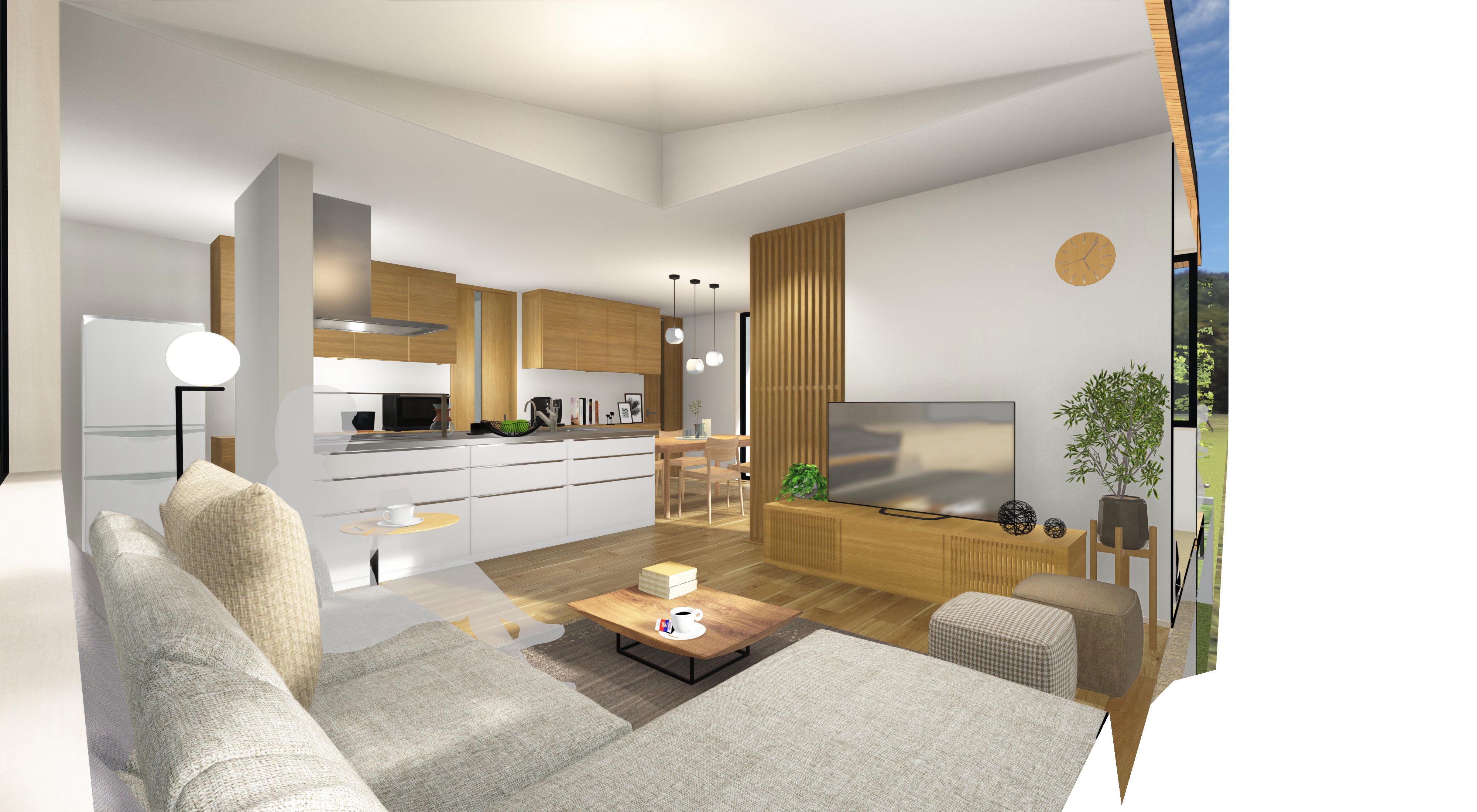 ・LDKは現し梁をあしらった木質感あふれる住まい