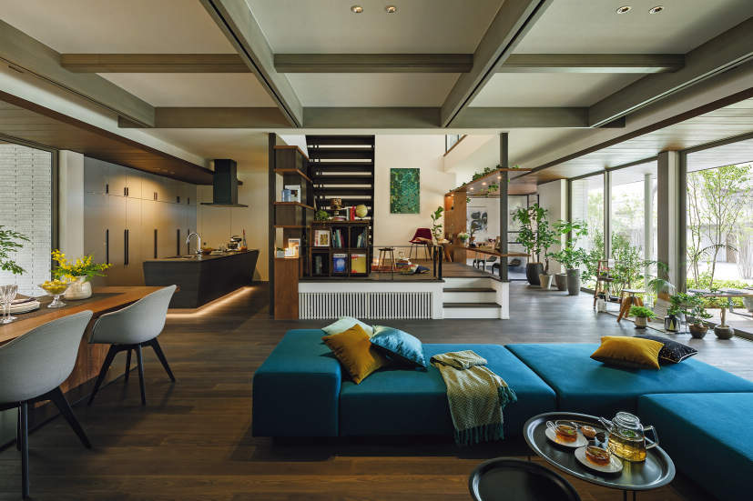 家族が自分達らしく、自由で、快適に、思い思いにくつろぐ仕切りの無い大空間と暮らしの提案、それが積水ハウスが提案する「ファミリー スイート」です。