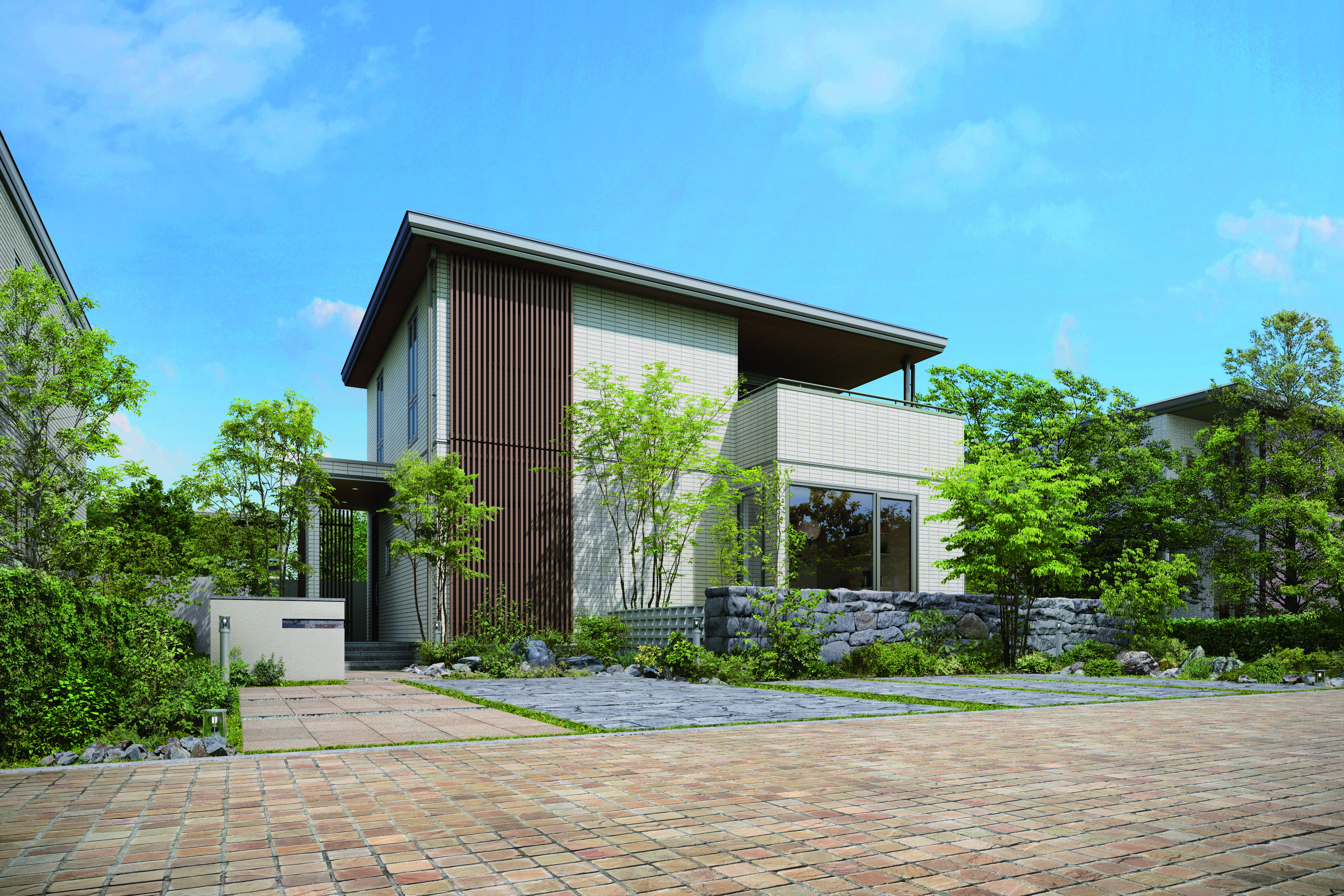 工場で完成したユニットは大切に、建築地へと運ばれます。組み立てにかかるのはわずか一日※。降水量の多い季節や地域でも風雨の影響を抑え、さらに近隣への迷惑も減らすことができます。※建物規模や天候、その他の条件により、一日で完成しない場合があります。