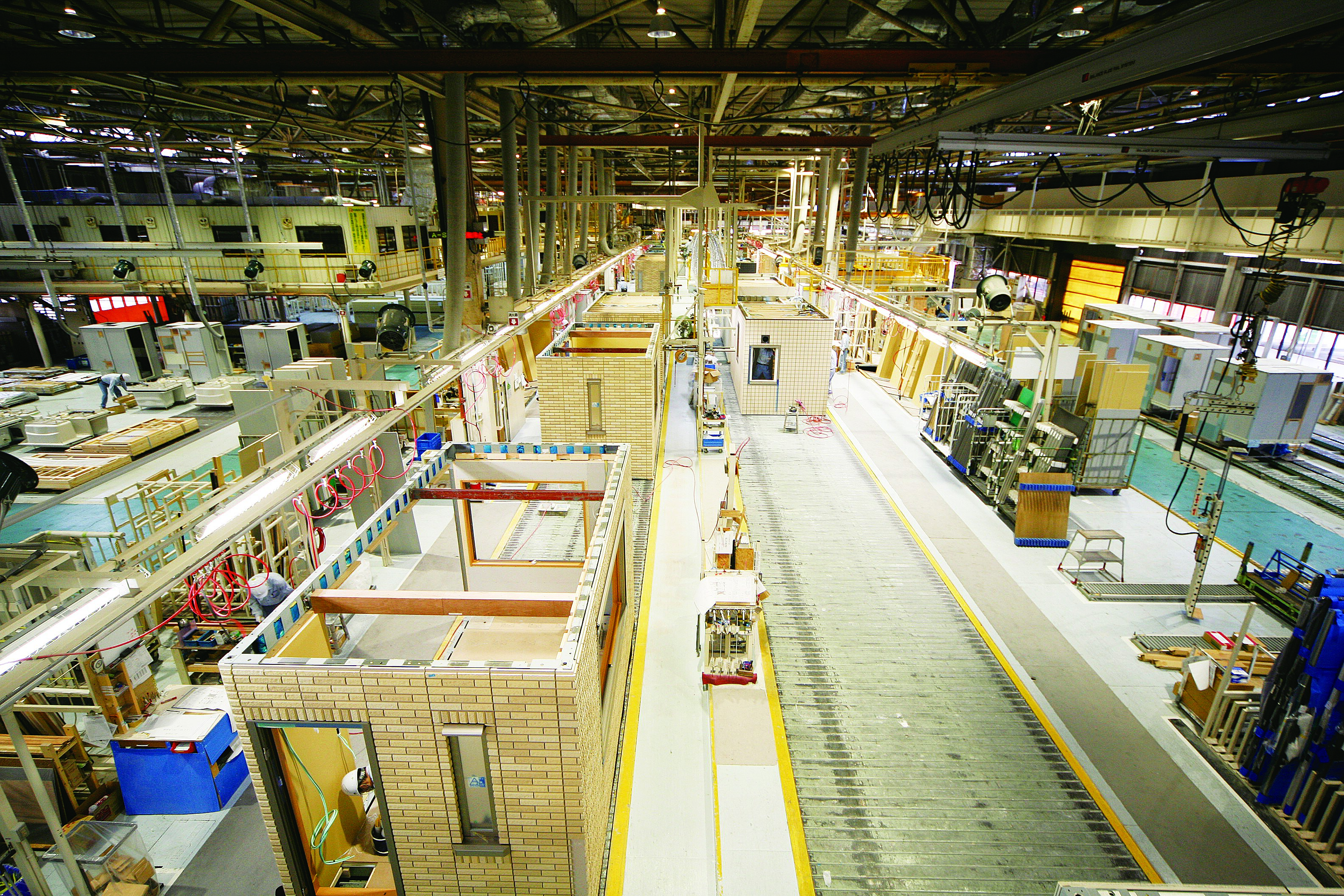 建築現場に容赦なく打ちつける雨風は、昔から職人たちを悩ませてきました。大切な住まいの内部を濡らさず、お届けしたい。そうした目的から、セキスイハイムは住まいの大半を“屋根の下”でつくります。
