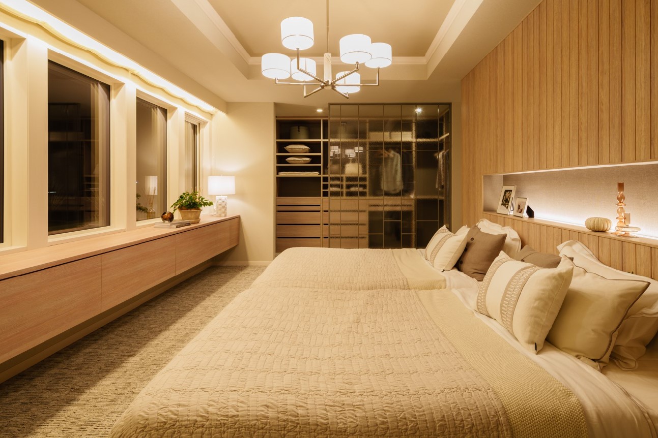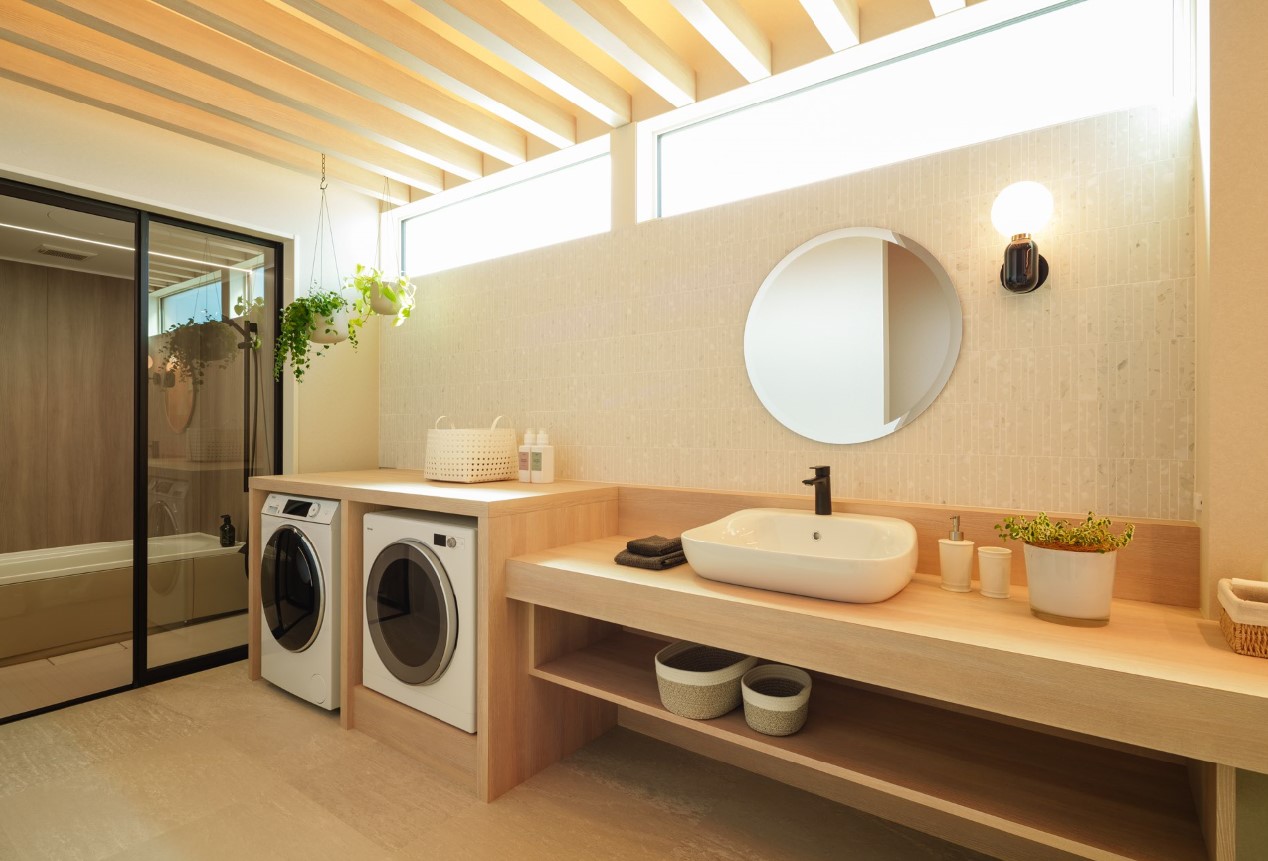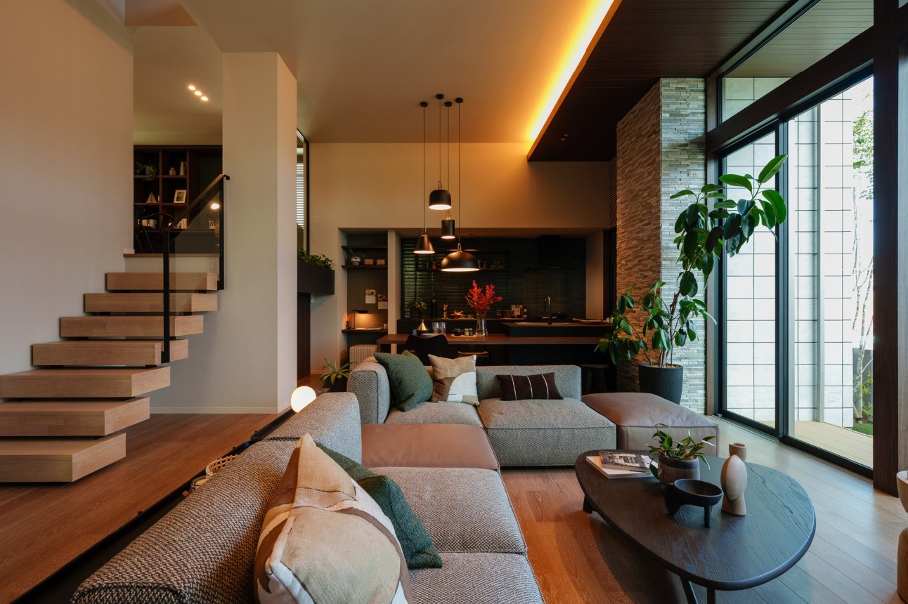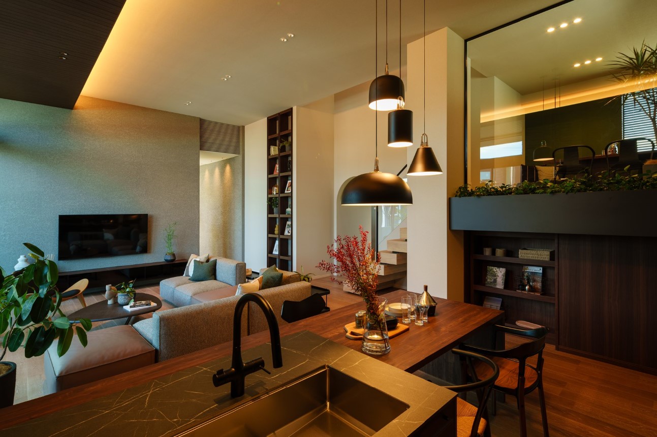 明るい色調の中で実現した新しいラグジュアリーデザインと、内と外を一体に見せる空間設計や、スキップ空間、家事動線など見どころ満載です。