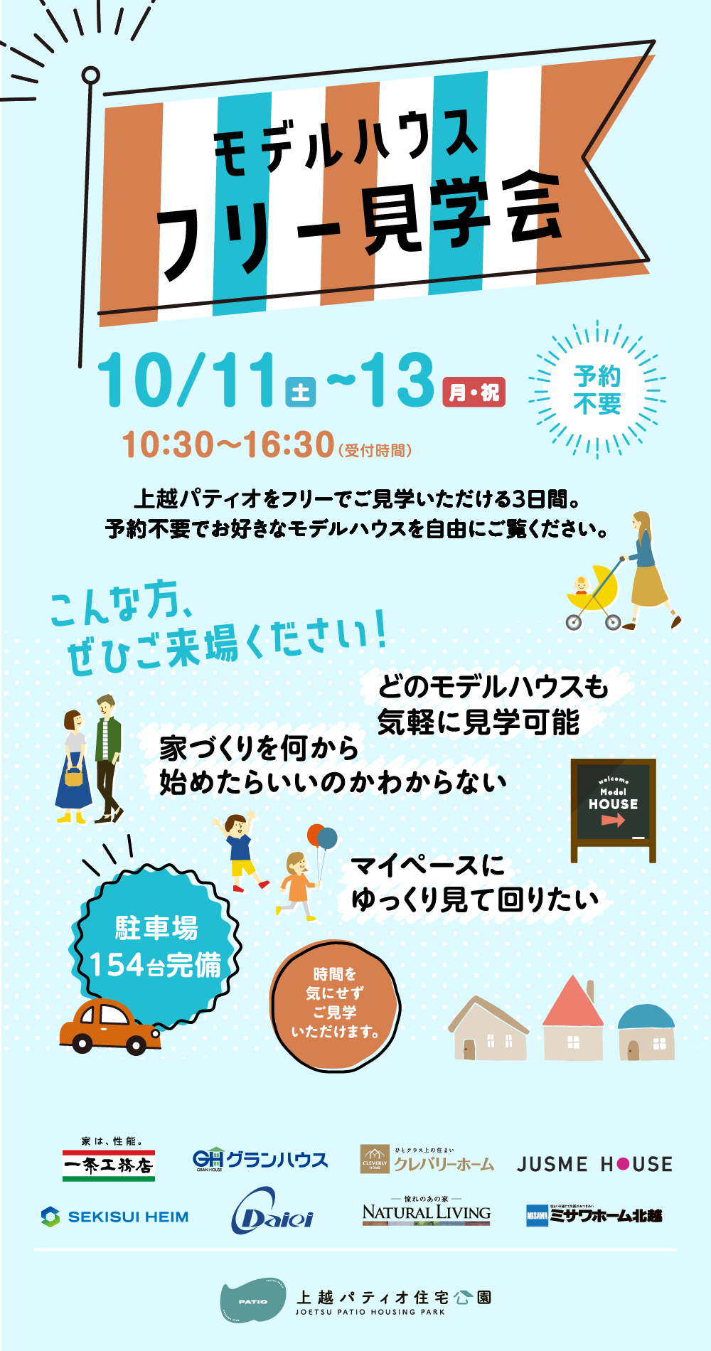 理想の住まいをじっくり体感してください。 駐車場は154台完備、上越ICからすぐの好アクセスです。