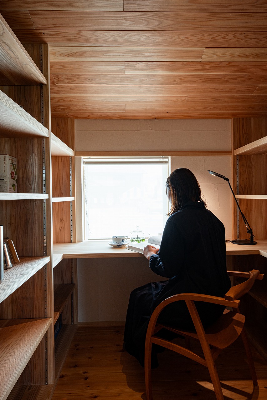 パントリーの奥にも、家事の合間にひと息つける書斎を設けました。
