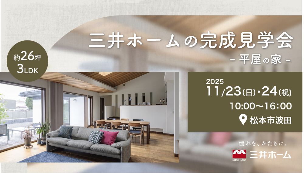 【三井ホーム】26坪|平屋の家完成見学会-松本市-