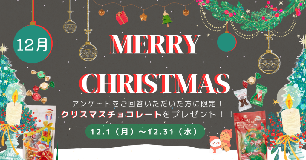日時:【12月】アンケートにご回答いただいた方限定! 12月1日(月)~12月31日(水)10時~18時
