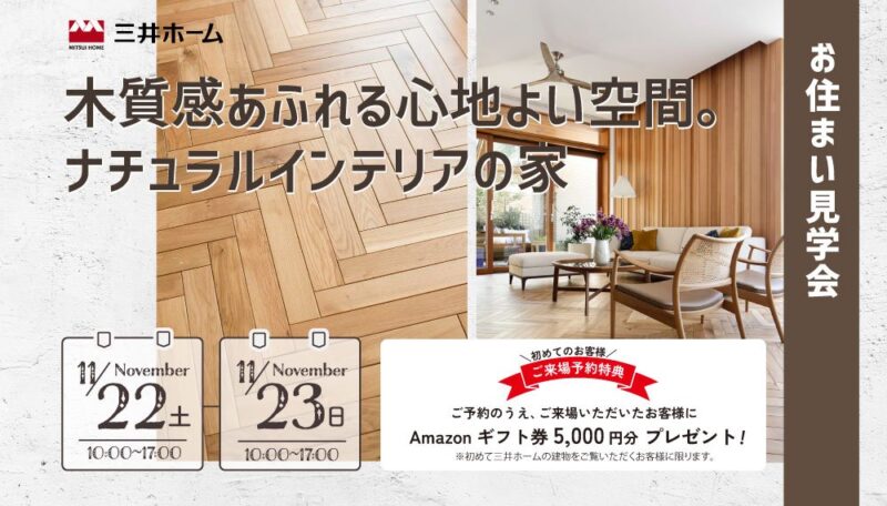 【三井ホーム】11/22(土)・23(日) お住まい見学会 ~築約10か月のお住まい~