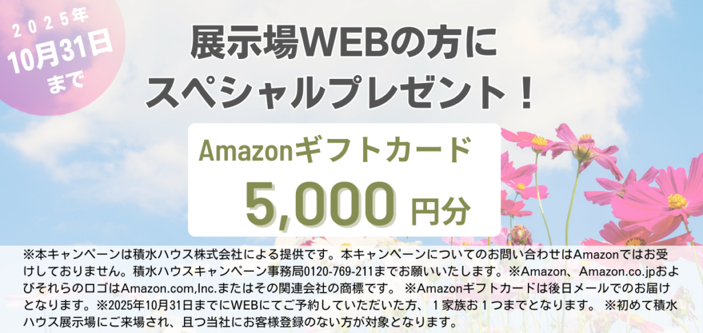 【積水ハウス】11/1~11/30 WEB予約にてご来場いただいた方にAmazonギフトカード5000円分