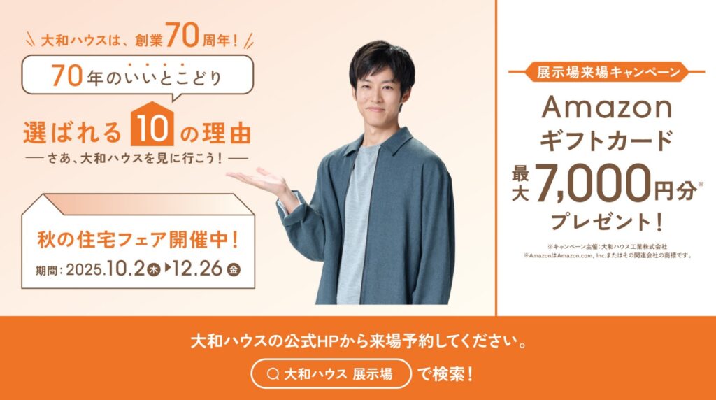 【ダイワハウス】Amazonギフトカード最大7000円プレゼント!住宅フェア開催☆