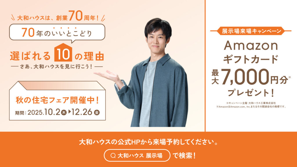 【ダイワハウス秋の住宅フェア開催中】 展示場来場キャンペーン!Amazonギフトカード最大7,000円分プレゼント!!
